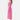 Fuchsia satin crush viscose midi dress with a slit . Features: open neckline, a cut-out waist and a close-fitting silhouette, skirt of the A-silhouette dress is flared to the bottom has a front high cut on the right leg.